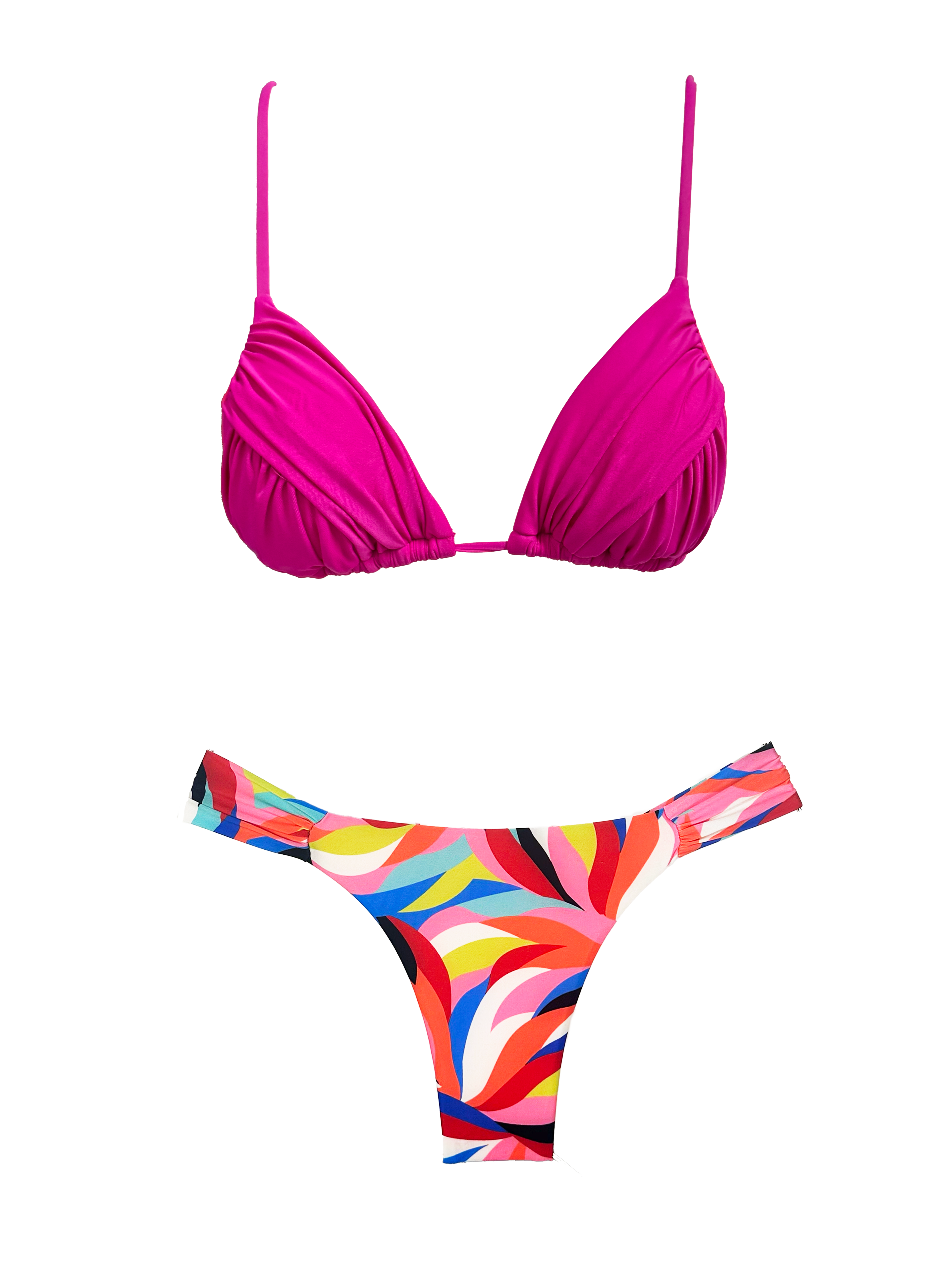 Il Triangolo Alessia è l'emblema del savoir-faire di Bikini Alejandro. Il drappeggio è progettato per modellare e donare volume al seno.